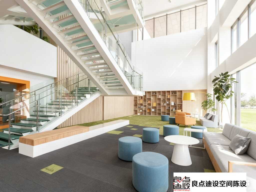 層疊之美:現代簡約風的活力中庭!神仙軟裝設計讓辦公室秒變高效顏值雙開掛??