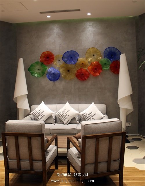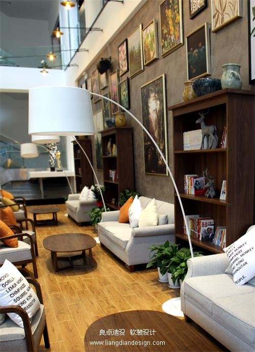 在軟裝設計中將山水的大自然靈性融入空間中,使其翔動一種源自自然的藝術氛圍,山水、竹子、流沙、雨花石、綠植及原木等這些元素運用其中,使整個空間一步一景,一份寧靜的北歐風情。裝飾材料主要有木材、石材、玻璃和鐵藝等,都無一例外地保留這些材質的原始質感。它所呈現出來的是非常接近自然的原生態的美感,沒有一點多余的裝飾,一切材質都袒露出原有的肌理和色澤。