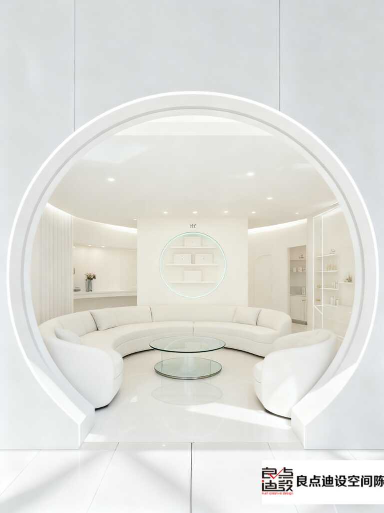 先看入口,那個別致的圓形門框瞬間就把氛圍感拉滿了。它不像普通門洞那么死板,反而像是一道神秘通道,悄悄告訴你:走進來,就是另一個美麗新世界。這種設計小心機,一下子就能勾起顧客的好奇心,誰不想進去探個究竟呢?