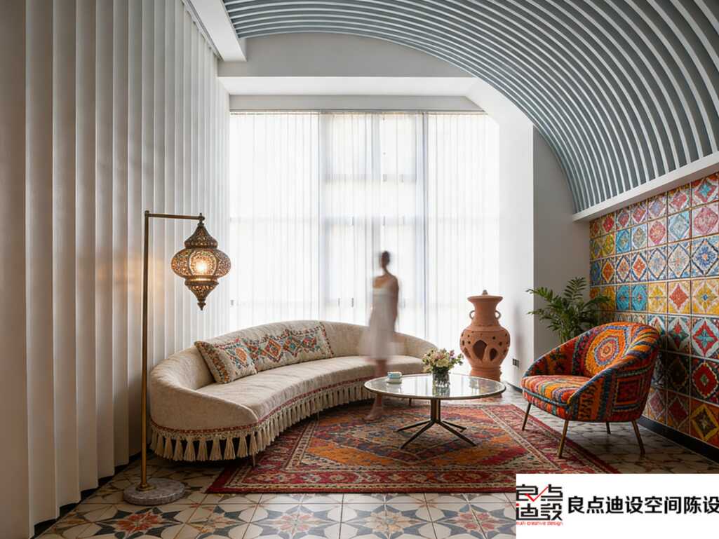 軟裝細(xì)節(jié)才是真正的重頭戲。進(jìn)門那塊兒,一張淺色沙發(fā)軟軟地?cái)[在那兒,靠墊選了清新淡雅的色調(diào),坐感超棒,客人一進(jìn)來就能卸下疲憊。***吸睛的***是那張?jiān)敬髨A桌,天然紋理看著就很有質(zhì)感,上面隨性放著插滿干花的玻璃花瓶,還有精致的茶杯,每一處小物件都透著用心。墻上掛的大布簾也是神來之筆,增添了幾分隨性和自然,讓空間不至于太板正。